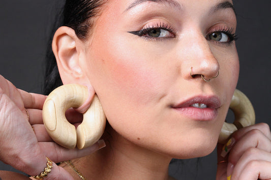Wood Carved Ear Hoops (Pair) - E006
