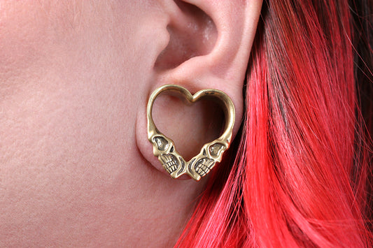 Golden Skull Heart Tunnels - (Pair) - PSS256