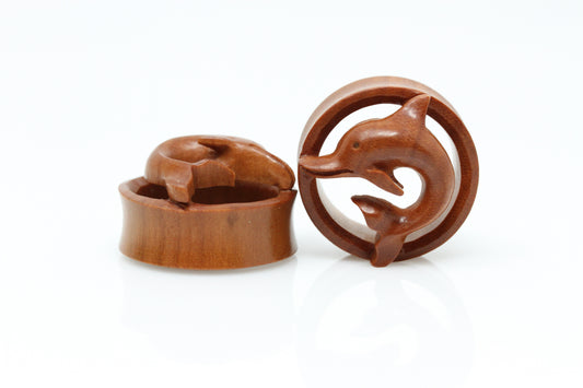 Wooden Dolphin Plugs - Hand-Carved Plugs (Pair) - PA156