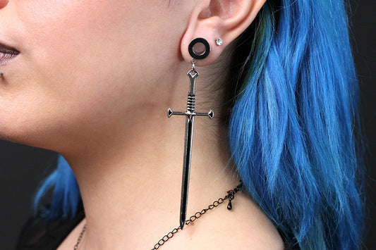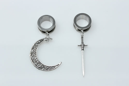 Moon and Sword Danglers - Screw on Tunnel (Pair) - TF069