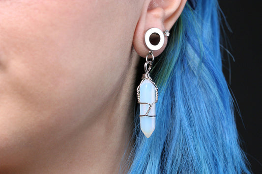 Opalite Wand Stainless Steel Danglers - Screw on Tunnel (Pair) - TF009