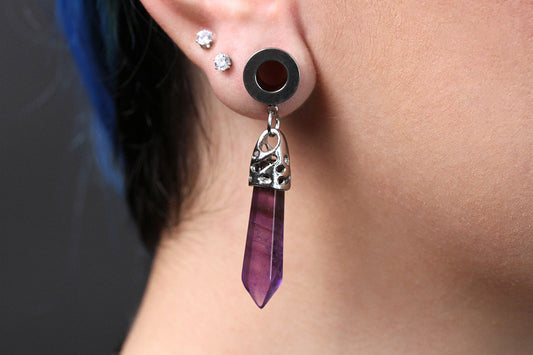 Amethyst Wand Stainless Steel Danglers - Screw on Tunnel (Pair) - TF012