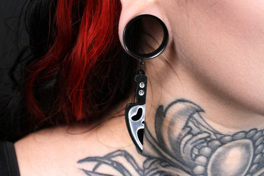Scream Knife Danglers - Stainless Steel Screw on Tunnel (Pair) - TF105