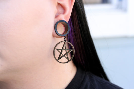 Pentagram Stainless Steel Danglers - Screw on Tunnel (Pair) - TF001