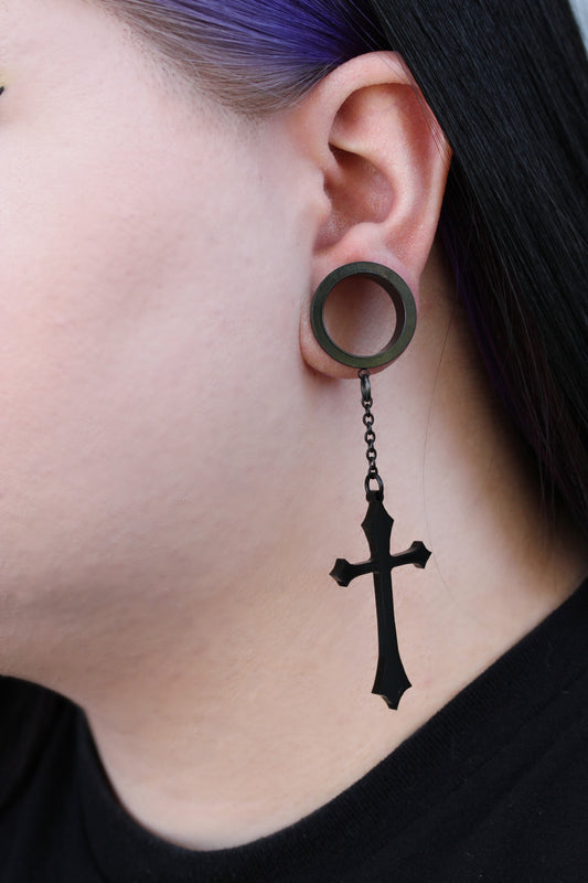 Black Cross Stainless Steel Danglers - Screw on Tunnel (Pair) - TF002