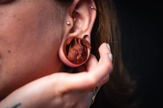 Fluffy Wood Plugs - Hand Carved Evil Plugs (Pair) - PA122