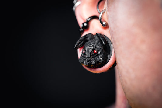 Fluffy Areng Wood Plugs - Hand Carved Evil Plugs (Pair) - PA136