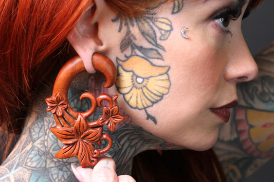 Triple Sacred Flower Stretcher Plug Earrings (Pair) - A046