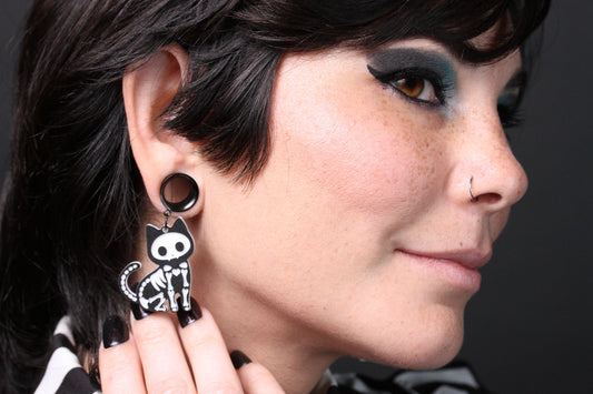 Skeleton Kitty Stainless Steel Danglers - (Pair) - TF098