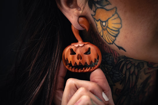 Devil Pumpkin Plugs - Wood Pumpkin Plugs (Pair) - PA180