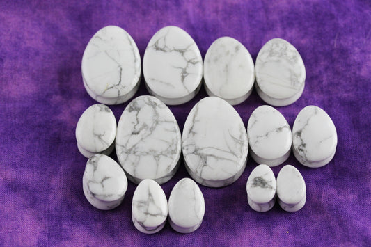 White Howlite Teardrop Plugs - Double Flared Howlite Plugs (Pair) - PH116