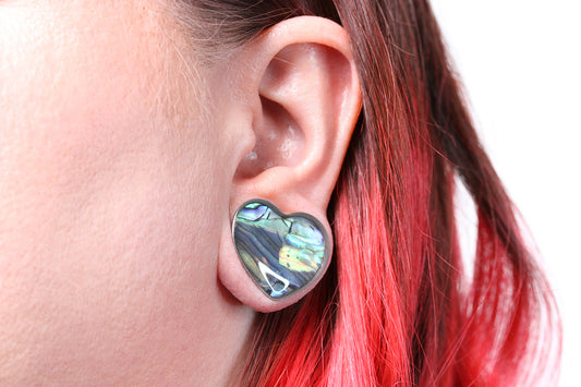 Abalone Shell Heart Plugs - (Pair) - PSS225