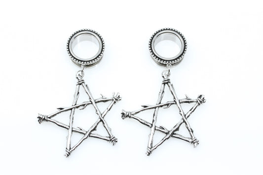 Pentagram Danglers - Screw on Tunnel (Pair) - PSS194