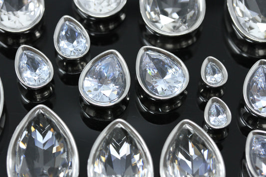 Sparkle Teardrops Stainless Steel Plugs (Pair) - PSS112