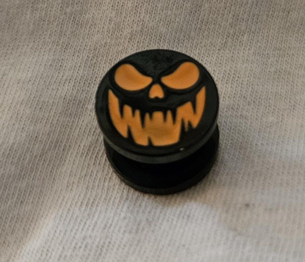 The Dark Halloween Pumpkin is out for vengeance this Halloween. Made from Stainless Steel this pumpkin plug is screw on double flare that comes in the following sizes.