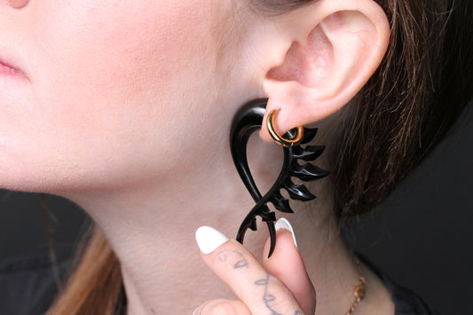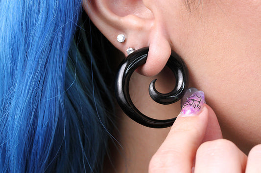 Black Twist Stretching Earrings Horn (Pair) - B012