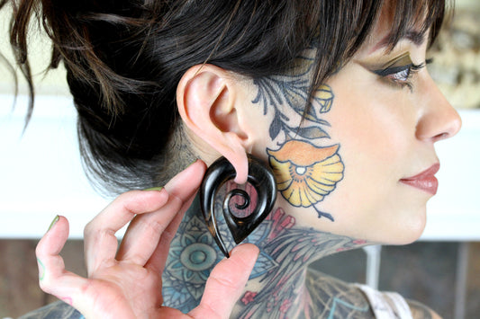 Horn Spirals for Stretched Ears - Hand Carved (Pair) - B048