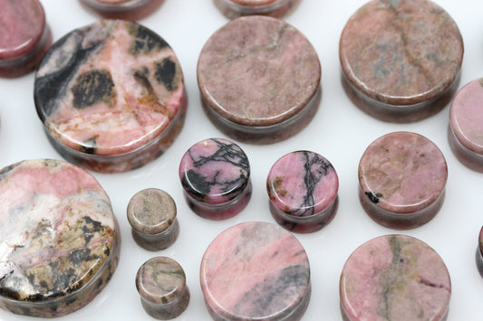 Rhodonite Plugs - Rhodonite Stone Plugs (Pair) - PH34