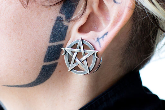 Pentagram Moon Stainless Steel Tunnels (Pair) - PSS92