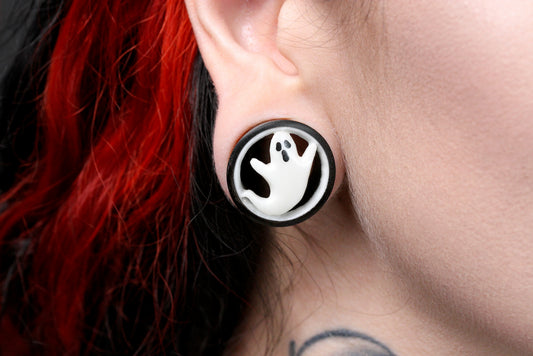 Wood and Bone Ghost Plugs - Hand Carved (Pair) - PA129