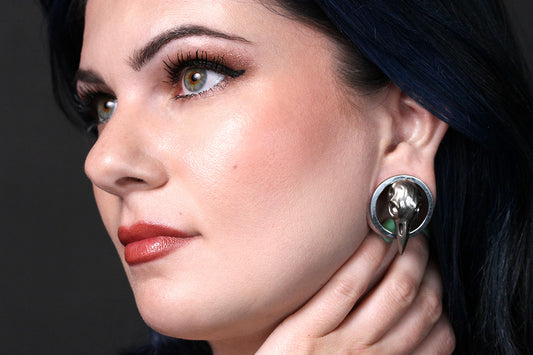 Raven Skull Stainless Steel Tunnels - Screw on Tunnel (Pair) - PSS08