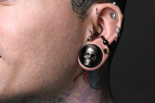 Silver Skull Wood Tunnels - (Pair) - PSS10