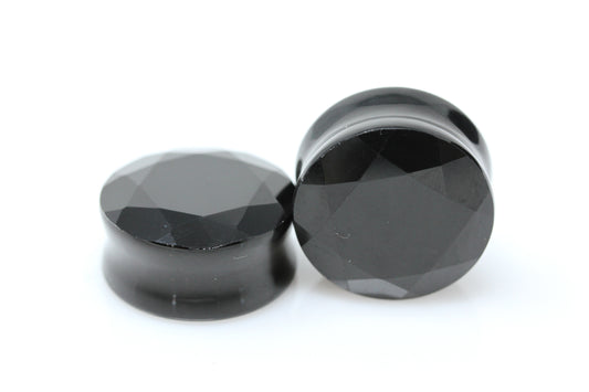 Black Glass Faceted Cut Plugs - (Pair) - PH104