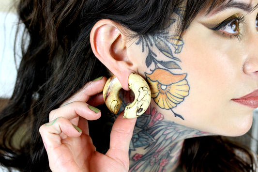 Hand Carved Bone and Wood Tunnels (Pair) - PA21
