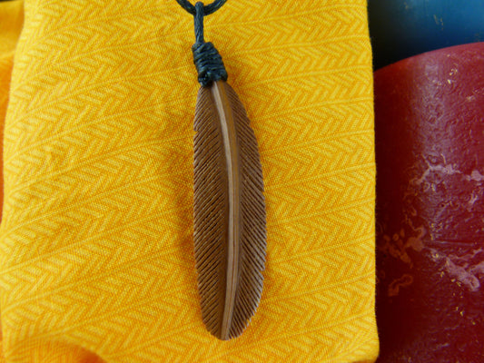 Brown Feather Necklace - Wood Carved Necklaces - Z010