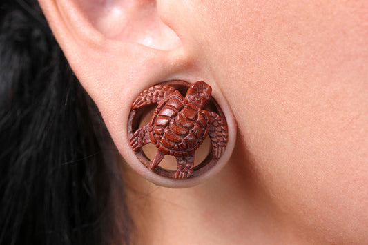 Wood Sea Turtle Plugs - Hand Carved - (Pair) - PA76
