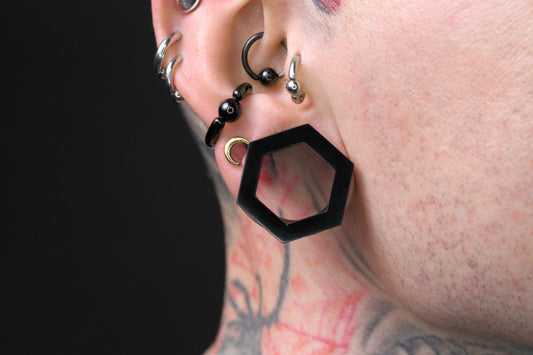 Black Hexagon Stainless Steel Tunnels - (Pair) - PSS60