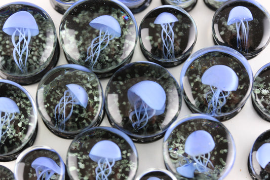 Blue JellyFish Glass Glow in the Dark Plugs (8mm - 16mm) (Pair) - G019