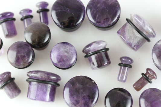 Single Flare Amethyst Plugs for stretched ears (Pair) - PH136