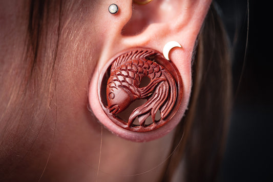 Wooden Koi Fish Tunnels - Hand Carved Koi Fish Plugs (Pair) - PA39