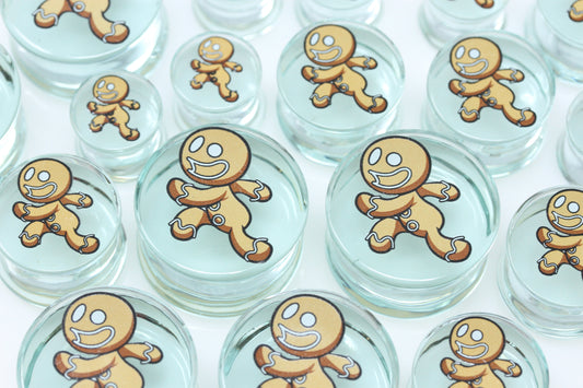 Carl the Gingerbread Man Glass Plugs (Pair) - G048