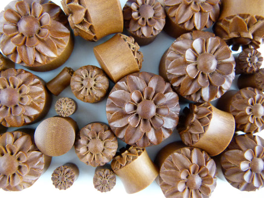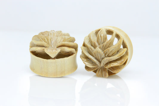 Wood Lotus Bloom Plugs (Pair) - PA169