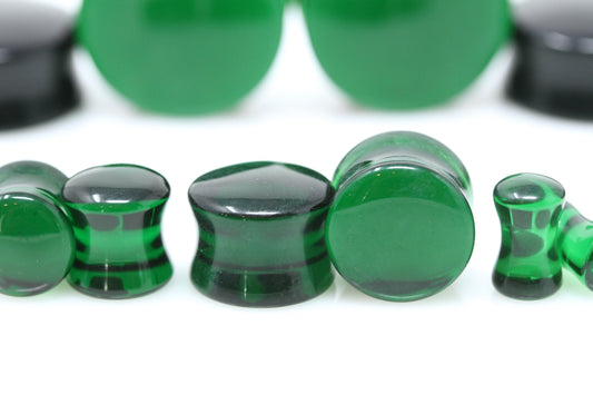Green Glass Convex Plugs for Stretched Ears (Pair) - PH146