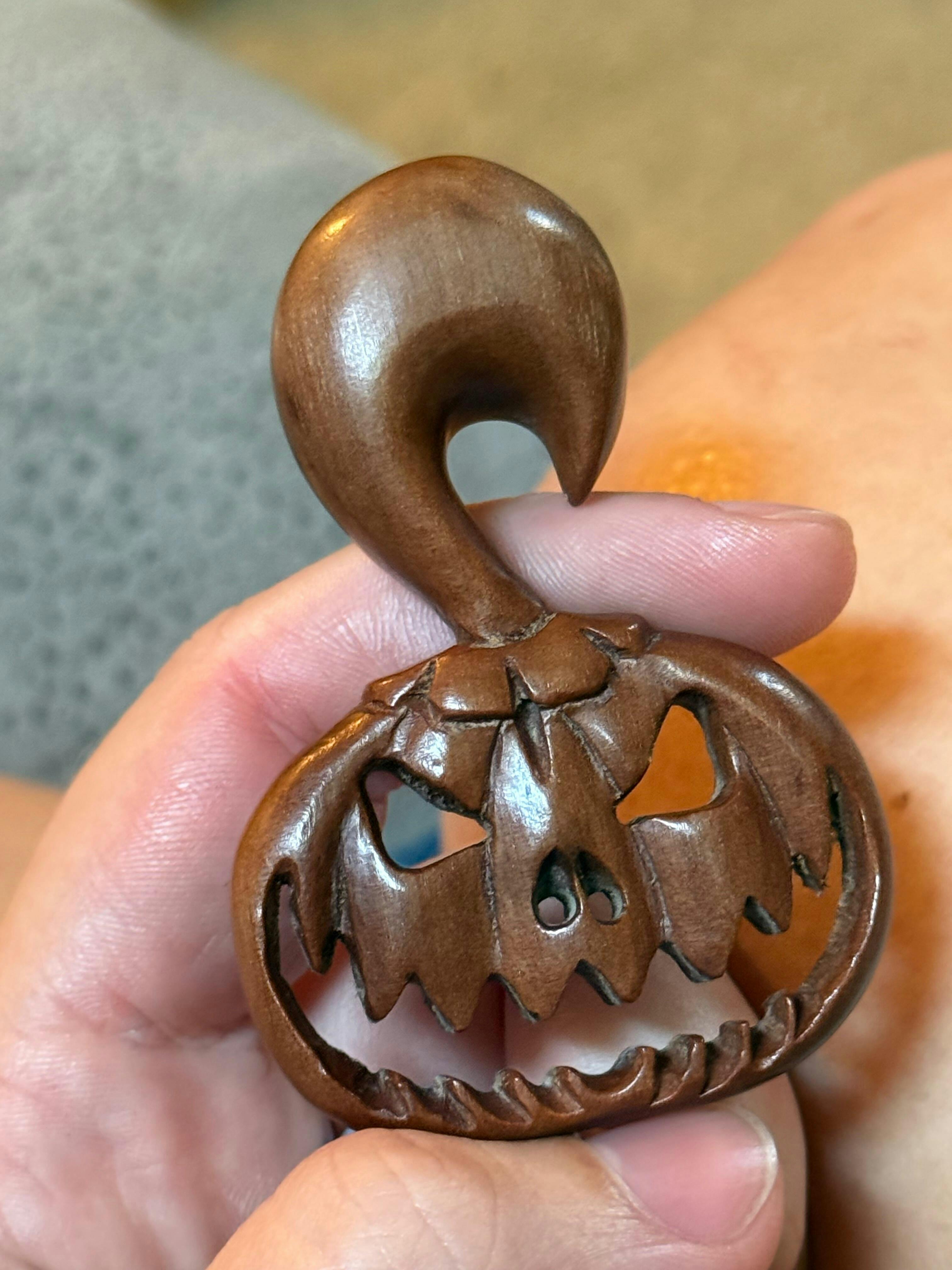 Carved Wood Pumpkin Hangers - Hand Carved Plugs (Pair) - A071