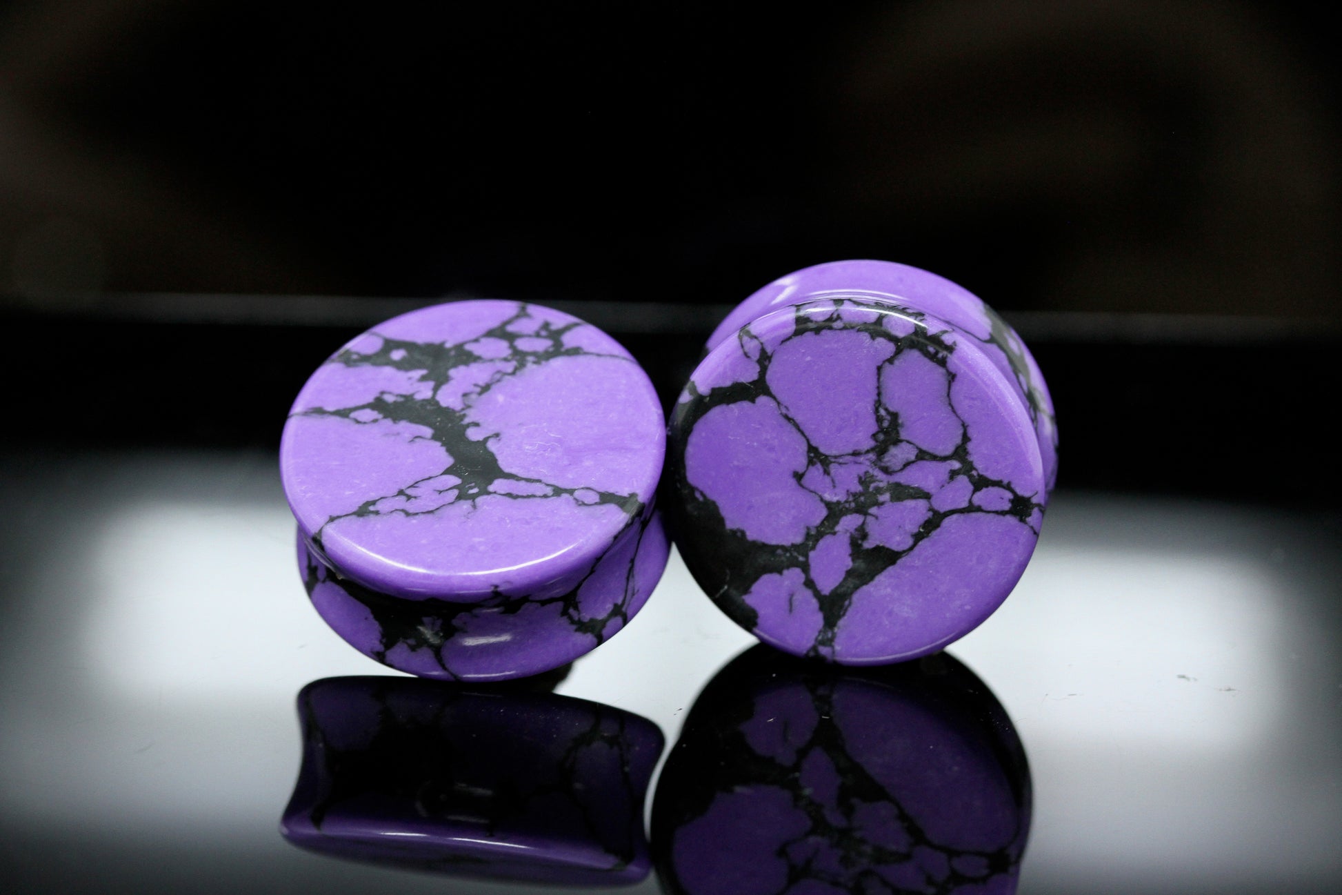Straight from the witches cauldron these plugs are a perfect way to get get ready for spooky season. Or purple colored synthetic howlite double flared plugs are a great look for the Fall.