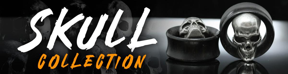 Silver Skull Wood Tunnels - (Pair) - PSS10