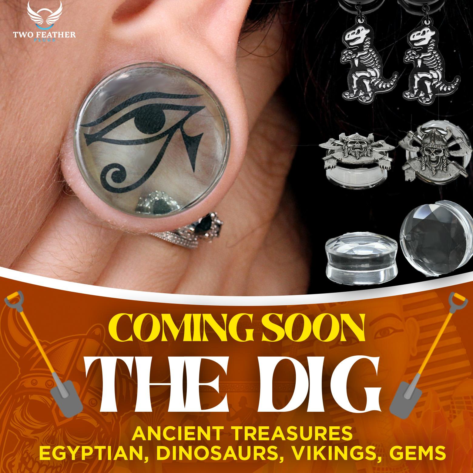 Sign up now. We have been busy digging up ancient artifacts for your stretched ears. We will be releasing LIMITED EDITION plugs for only 1 week. We will be having an Egyptian week, Dinosaur week, and Gorgeous Gem week. All of our discoveries from the Dig will be released soon.
