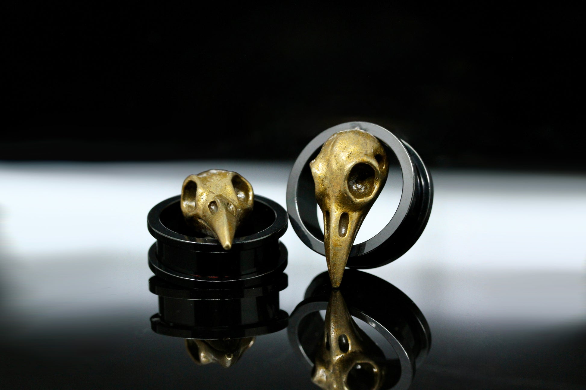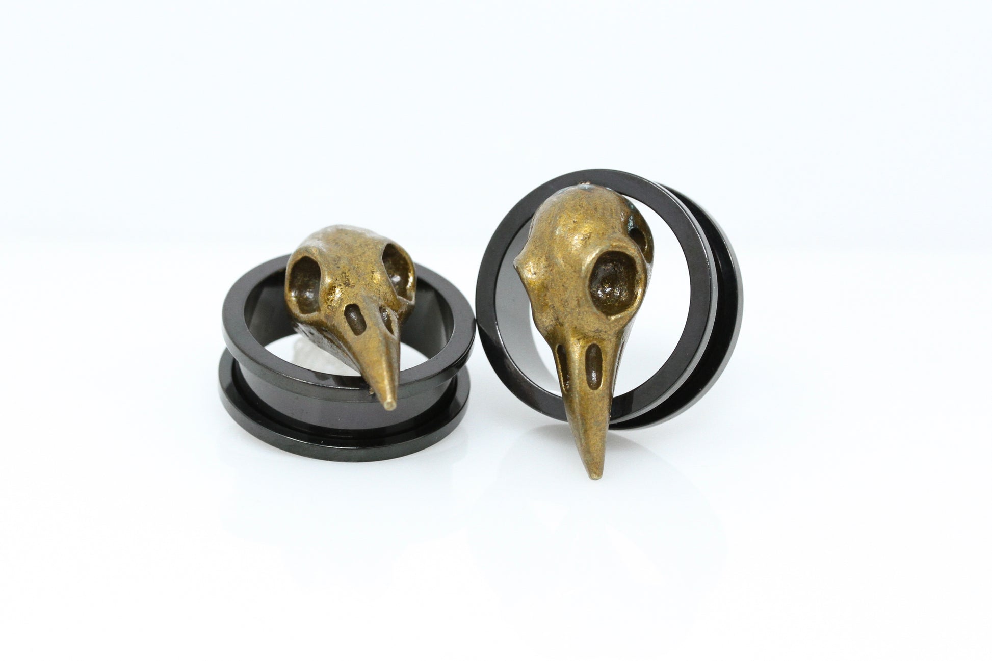 Our Raven Skull stainless steel tunnels are one of our most popular stainless steel tunnels. These stainless steel tunnels are screw-on tunnels and currently available in from 2 gauge up to 1 inch. Our screw-on tunnels are both easy to get in and out of your stretched ears and comfortable.