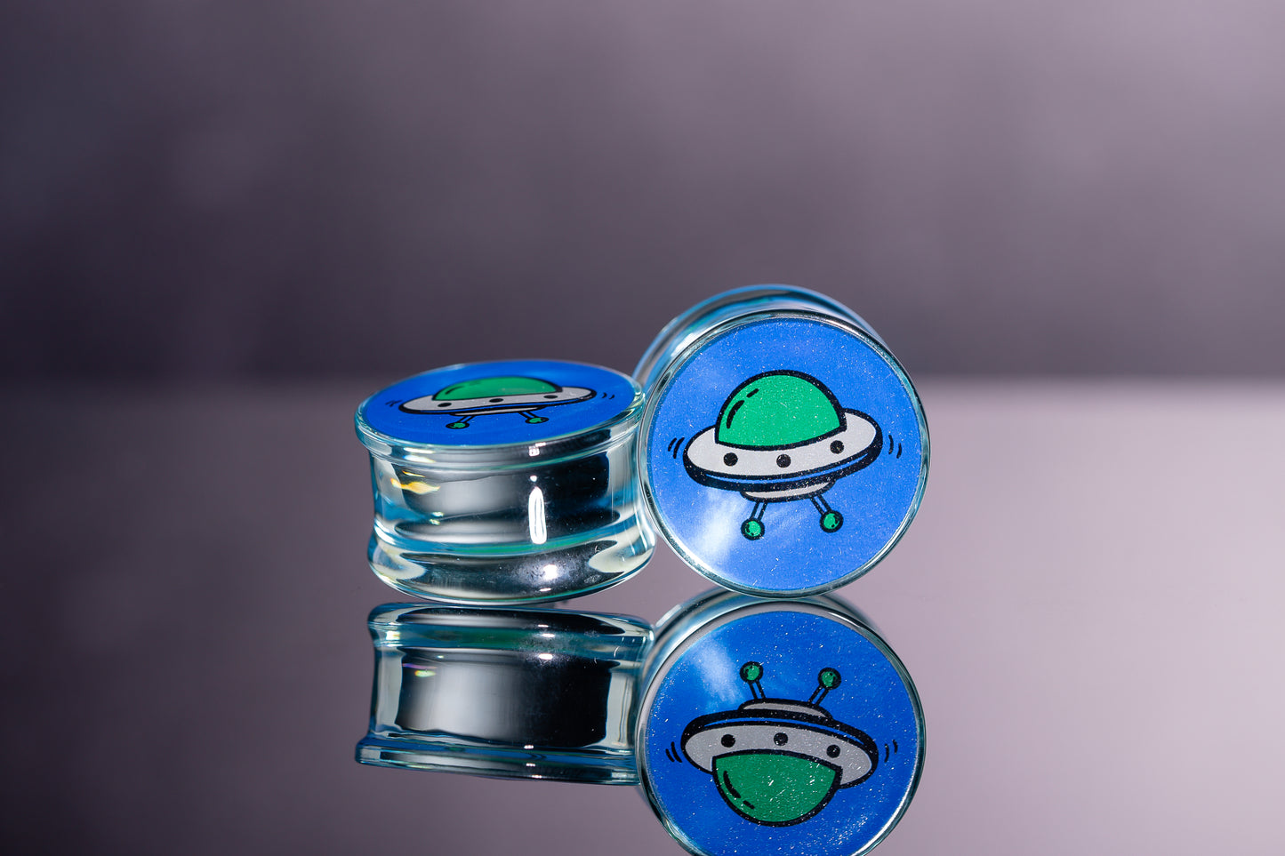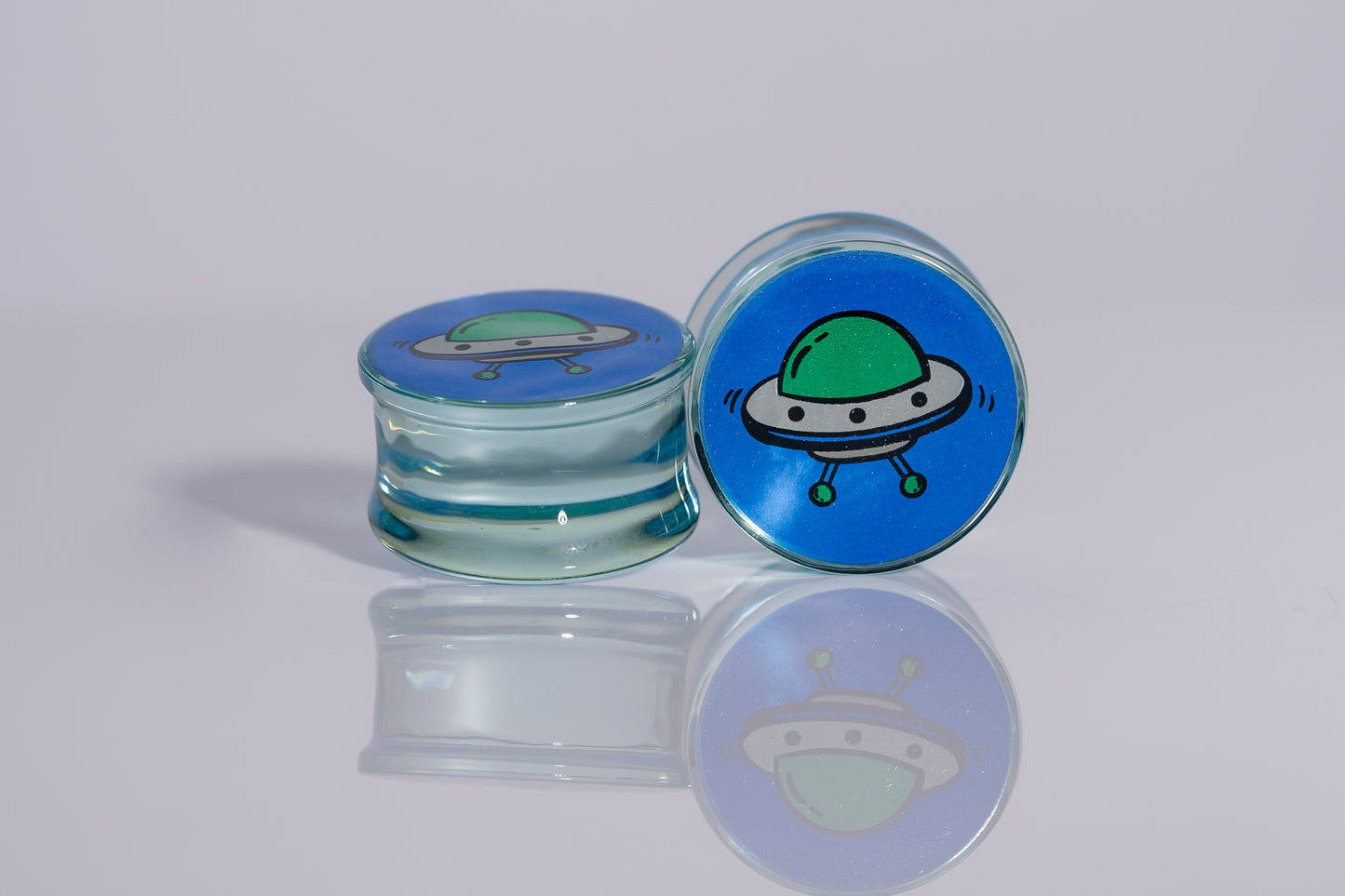 We do believe. These UFO's have been spotted and we are now offering them to our customers.. The UFO glass plugs are available from 6mm - 25mm. Each of these plugs is made from glass with the following diameters...